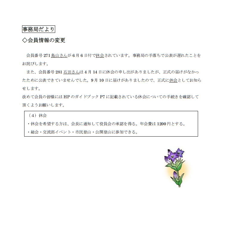 その中で、会誌は無償で配布されたとの意見があり実際はどうなのか調査中です。いずれにしても労山傘下の会である我が会もいくばくかの