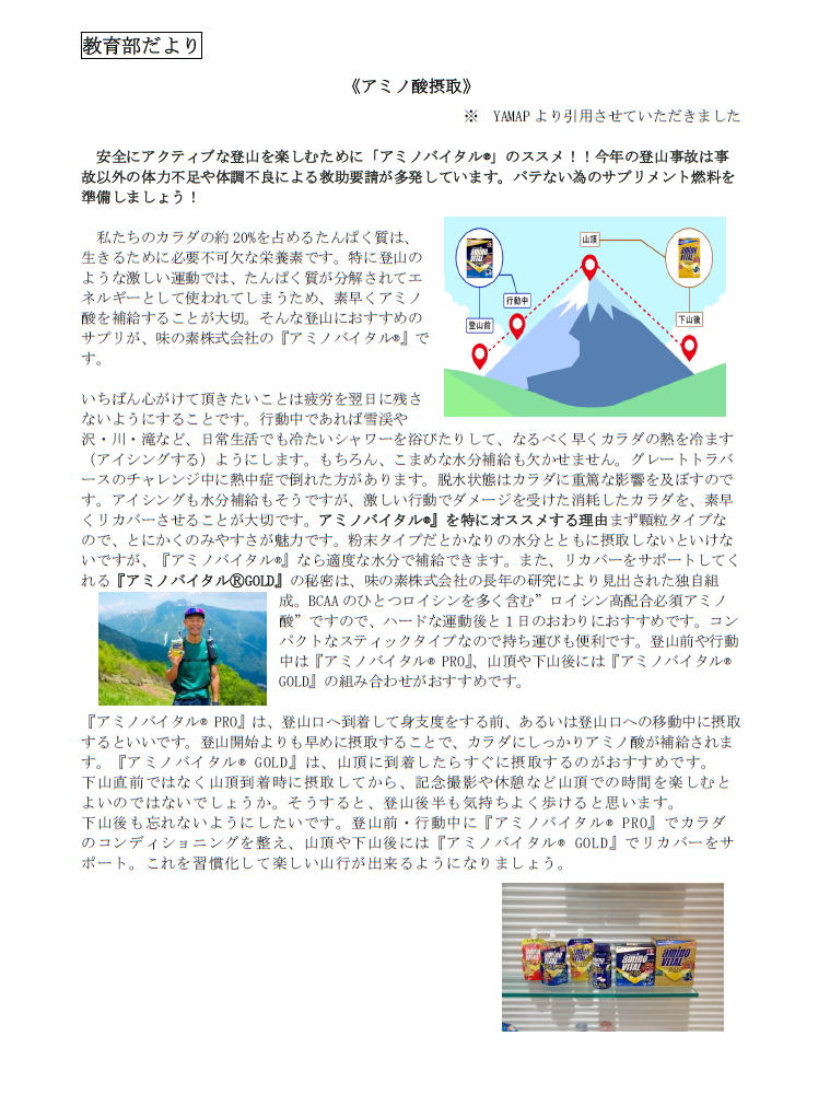 さん北川さん担当)を読図山行とすることを申し入れられ、担当者の了解か得られ、今年度の教 育部も協力することになりました。当日初めて勉強するのでは時間的に不十分なので、事前に勉