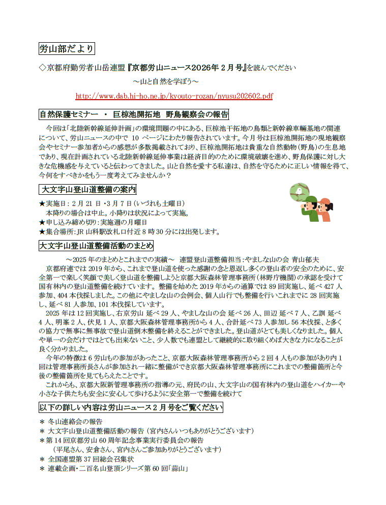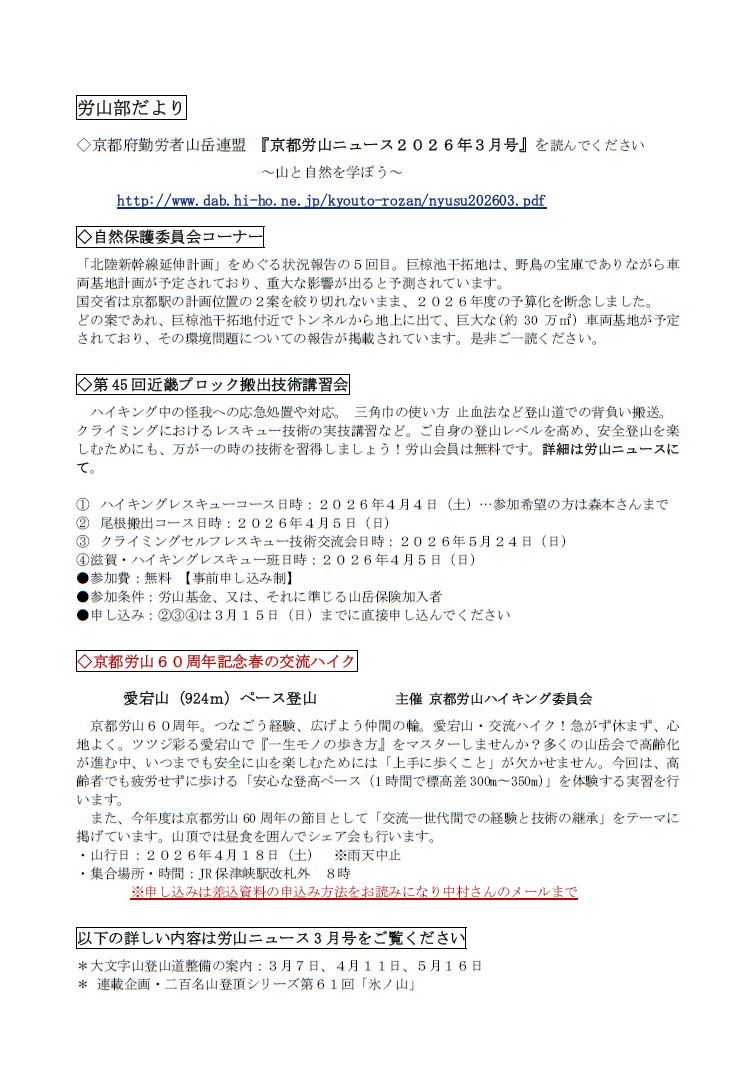 | 京都府勤労者山岳連盟へのリンク |