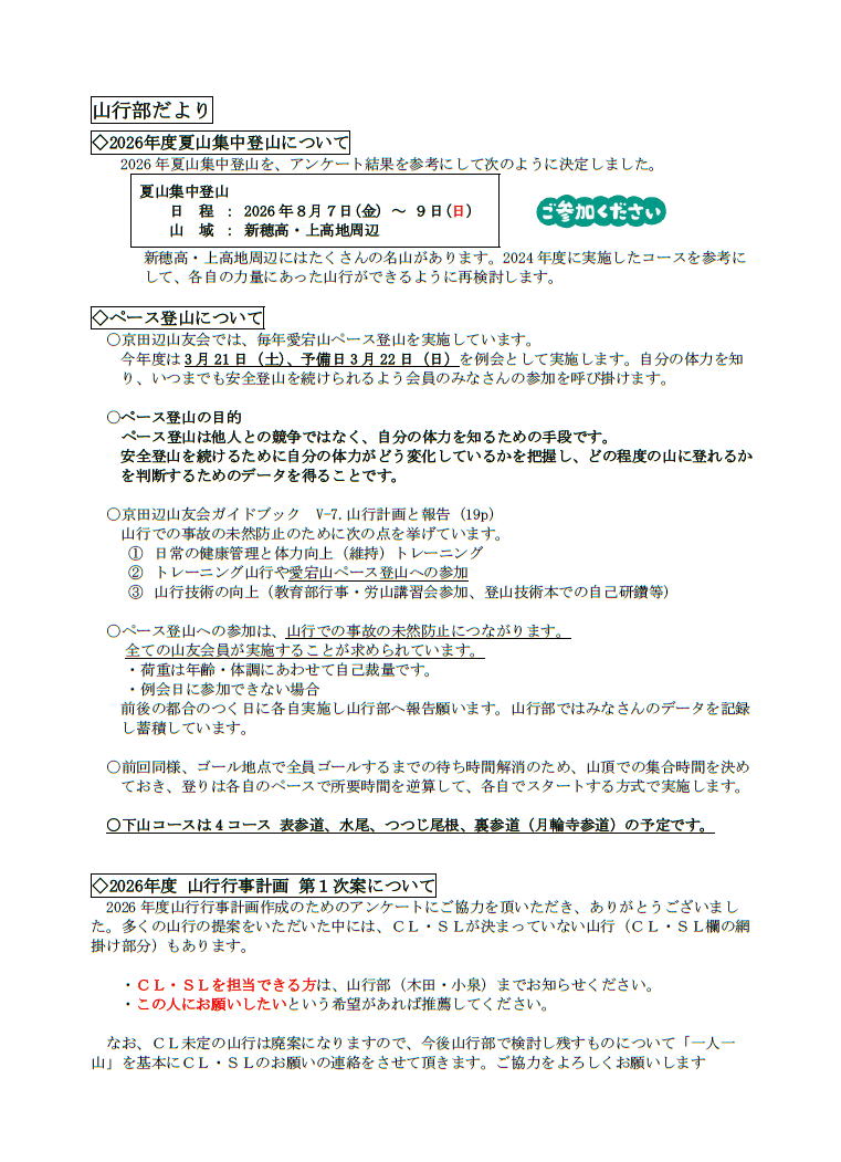 山行部セミナー報告書