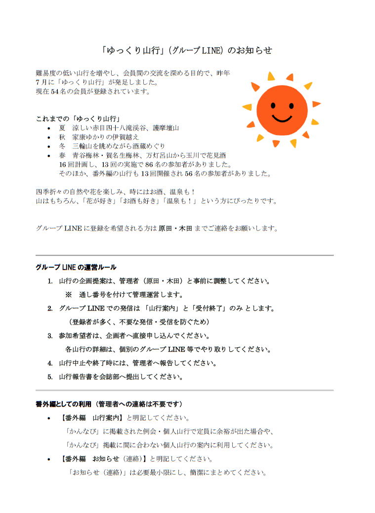 ●決定した山行計画の内容をメンバー全員に周知徹底すること。