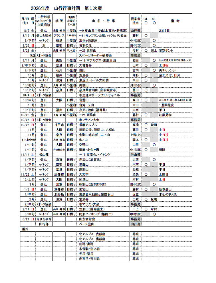 テキスト「山行計画」(補訂)